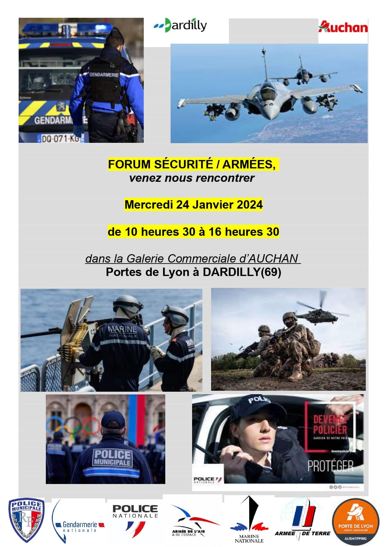 La gendarmerie de Dardilly organise un Forum Sécurité / Armées le mercredi 24 janvier 2024 dans la galerie commerciale d'Auchan à DARDILLY.