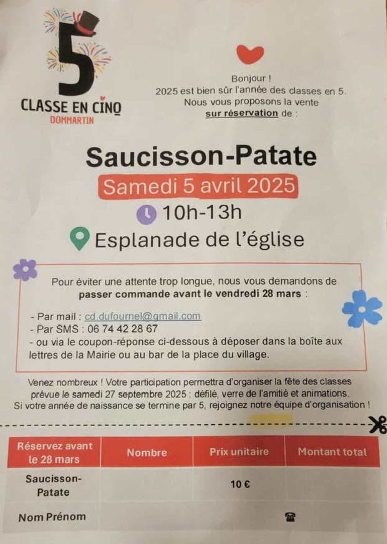 Vente de saucisson/patates des Classes en 5